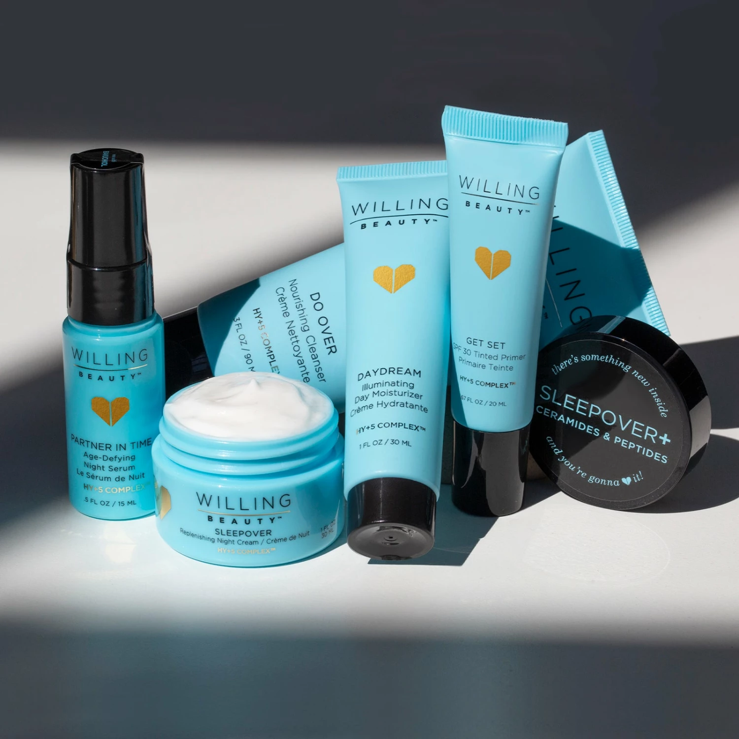 Fill weights: Cleanser: 90 ml | 3 fl oz, Moisturizer: 30 ml | 1 fl oz, SPF30 Tinted Primer: 20 ml | 0.67 fl oz, Serum: 15 ml | 0.5 fl oz, Night Cream: 30 ml | 1 fl oz