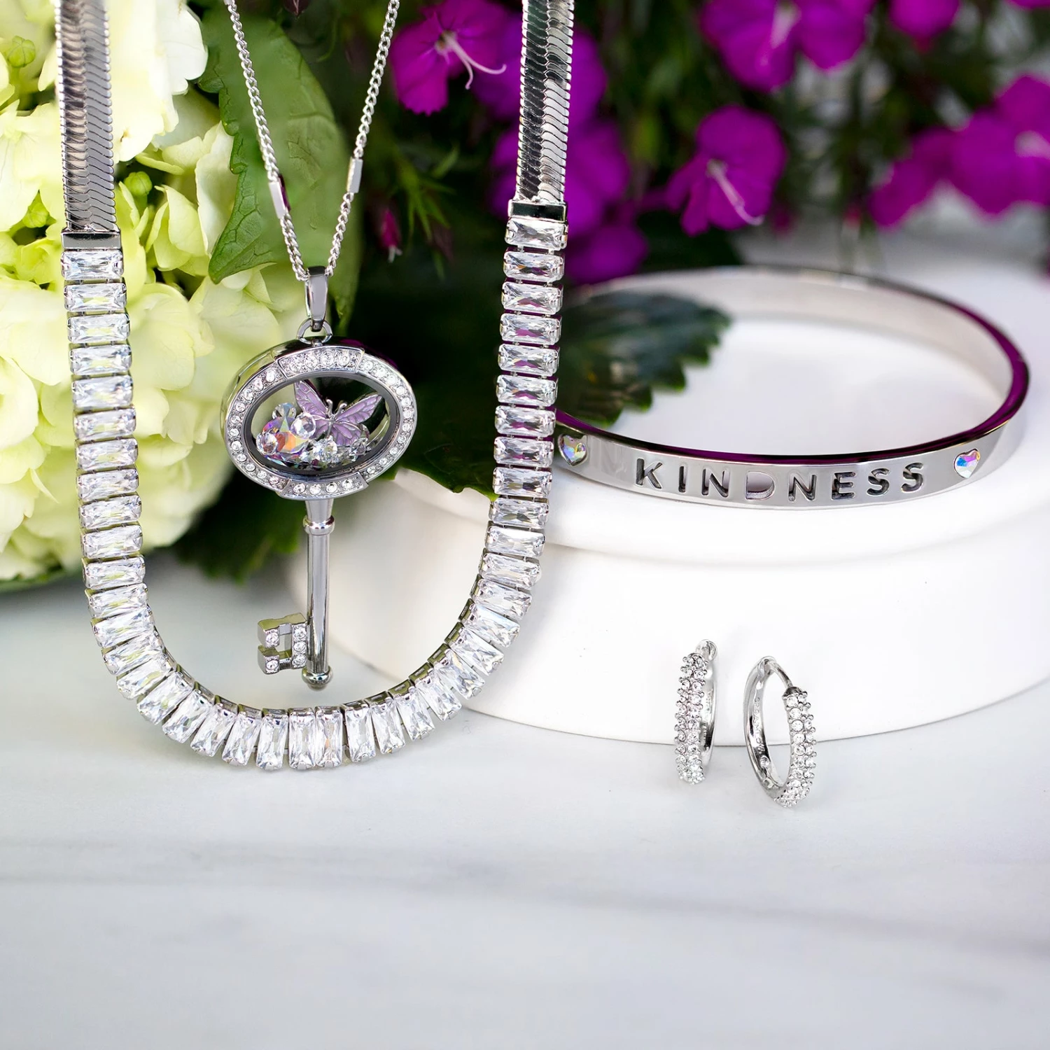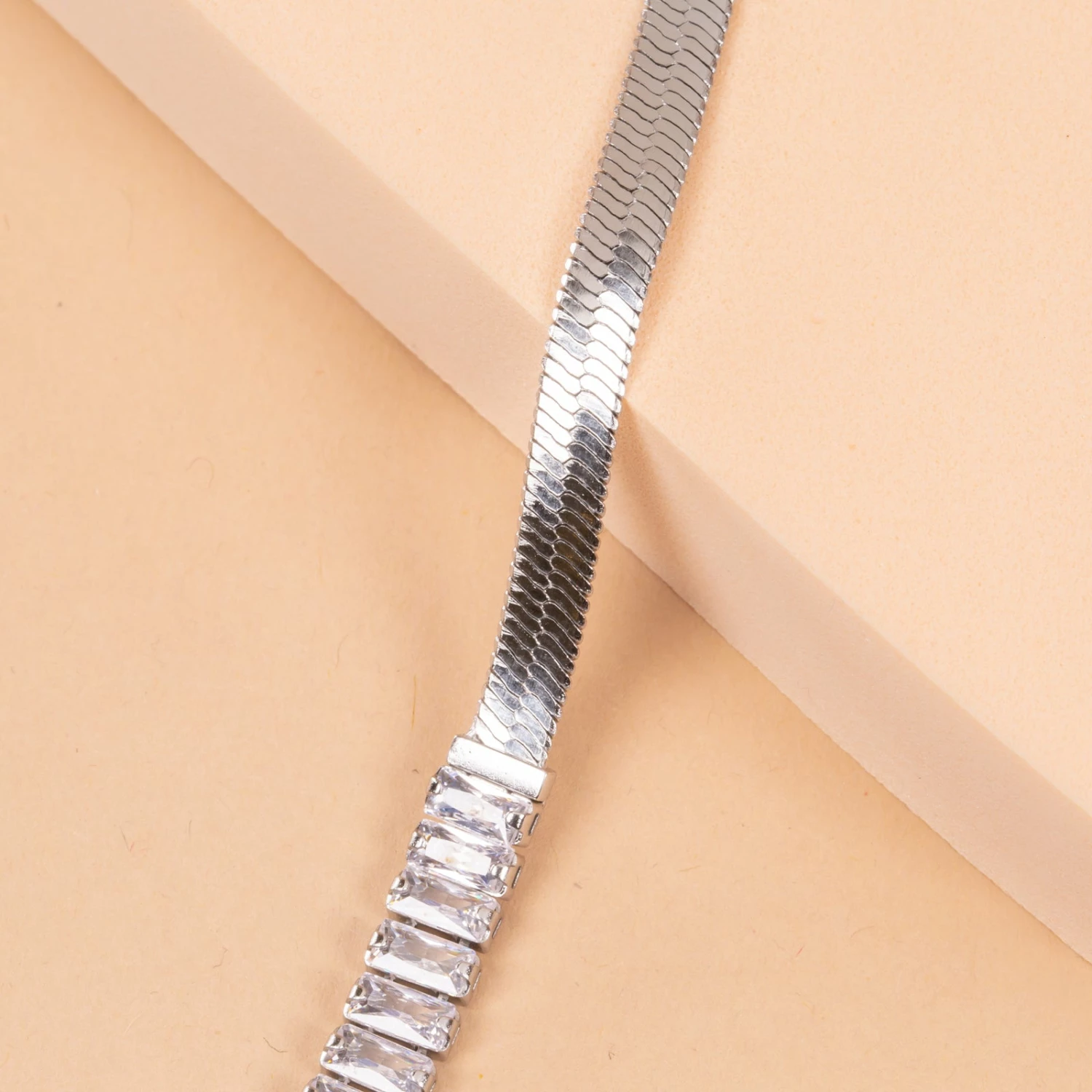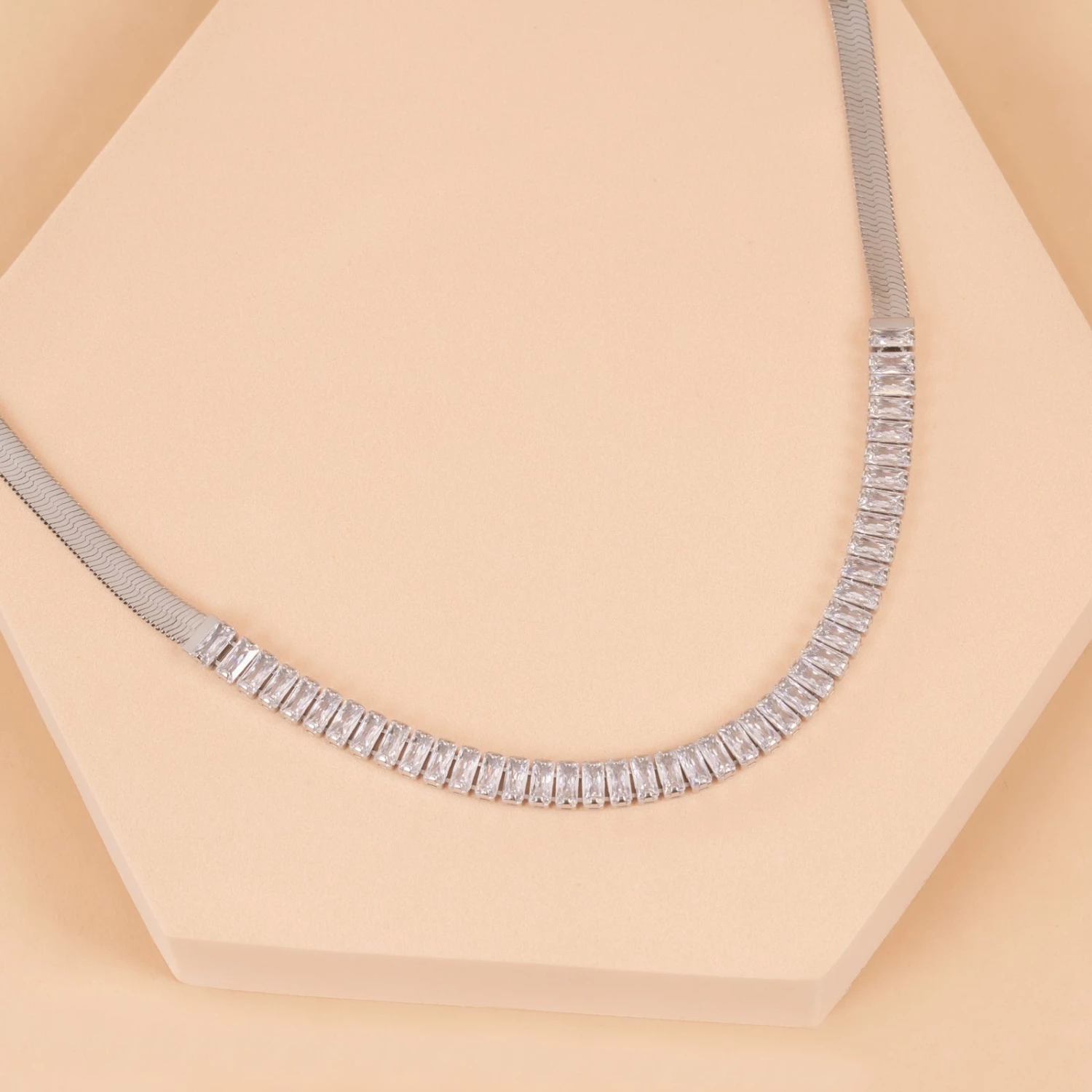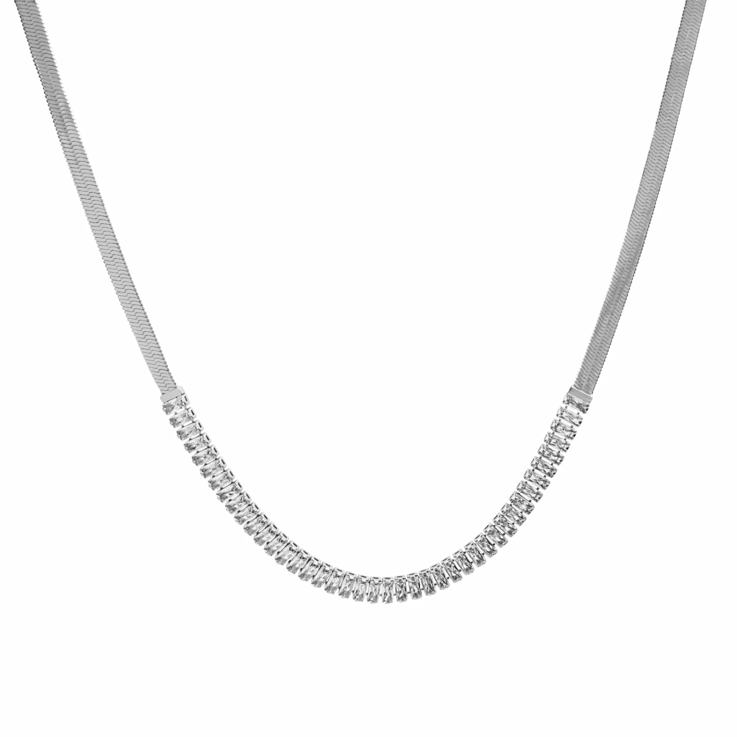 This Silver Baguette Crystal Snake Chain Necklace 16-19″ is about to become your favorite layering chain in 2022! This chain is not compatible with Living Lockets, but will look incredible layered with one.