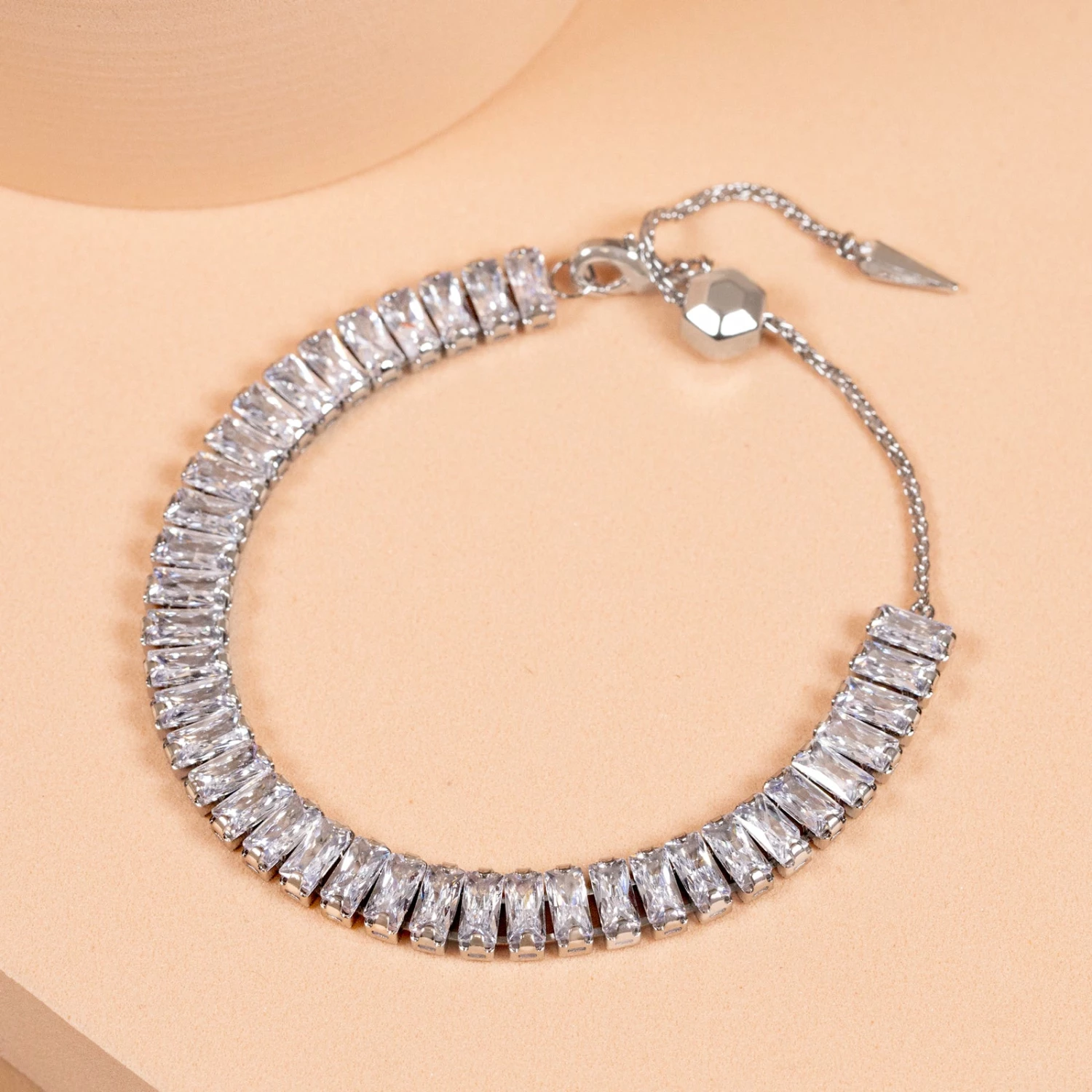 Tennis bracelets get an upgrade with this Crystal Bolo Bracelet! Shimmering Genuine Cubic Zirconia Baguette Crystals and an adjustable bolo make this an effortless add-on to any look!