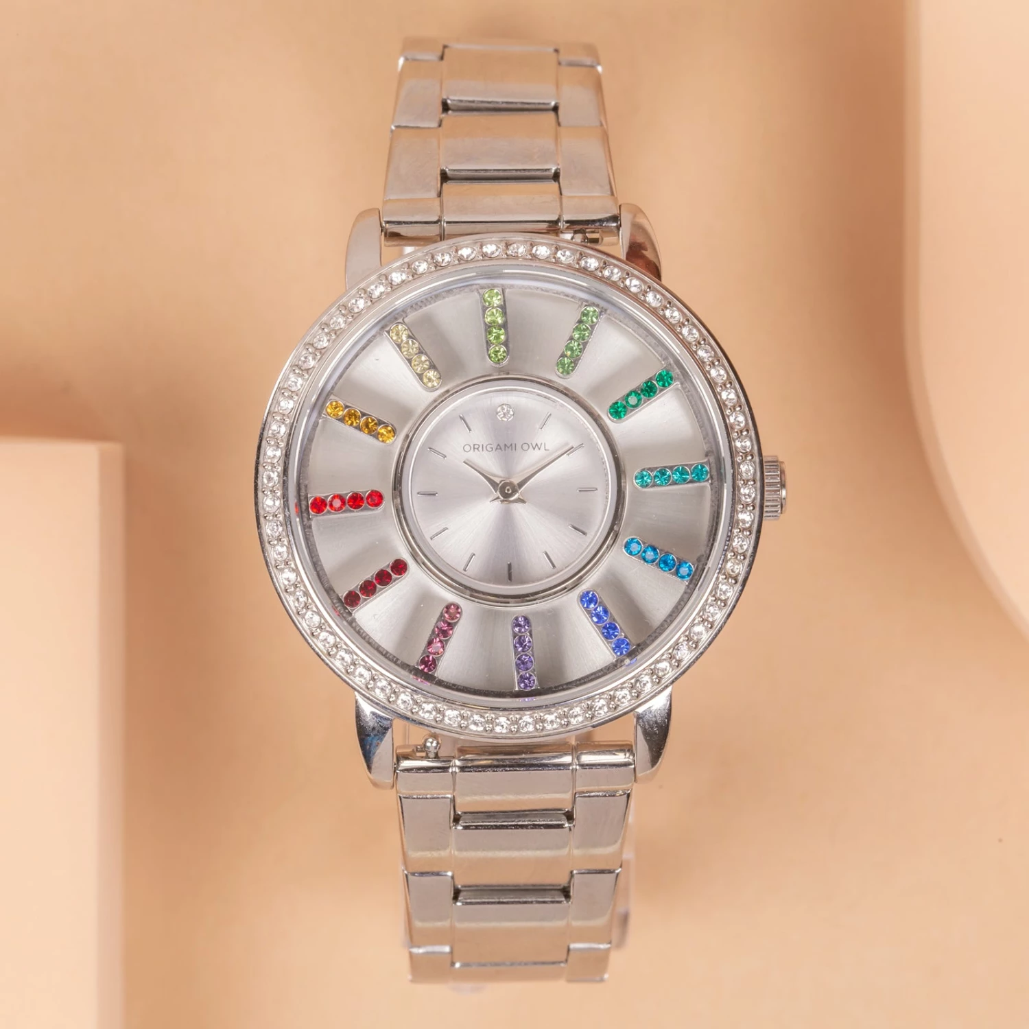 Add some color and meaning to your Signature Living Locket Watch with this Silver Crystal Rainbow Living Locket Watch Window Plate! Charms cannot be added while you have this plate in your locket watch, but with all these beautiful colors, you wonβt need them!