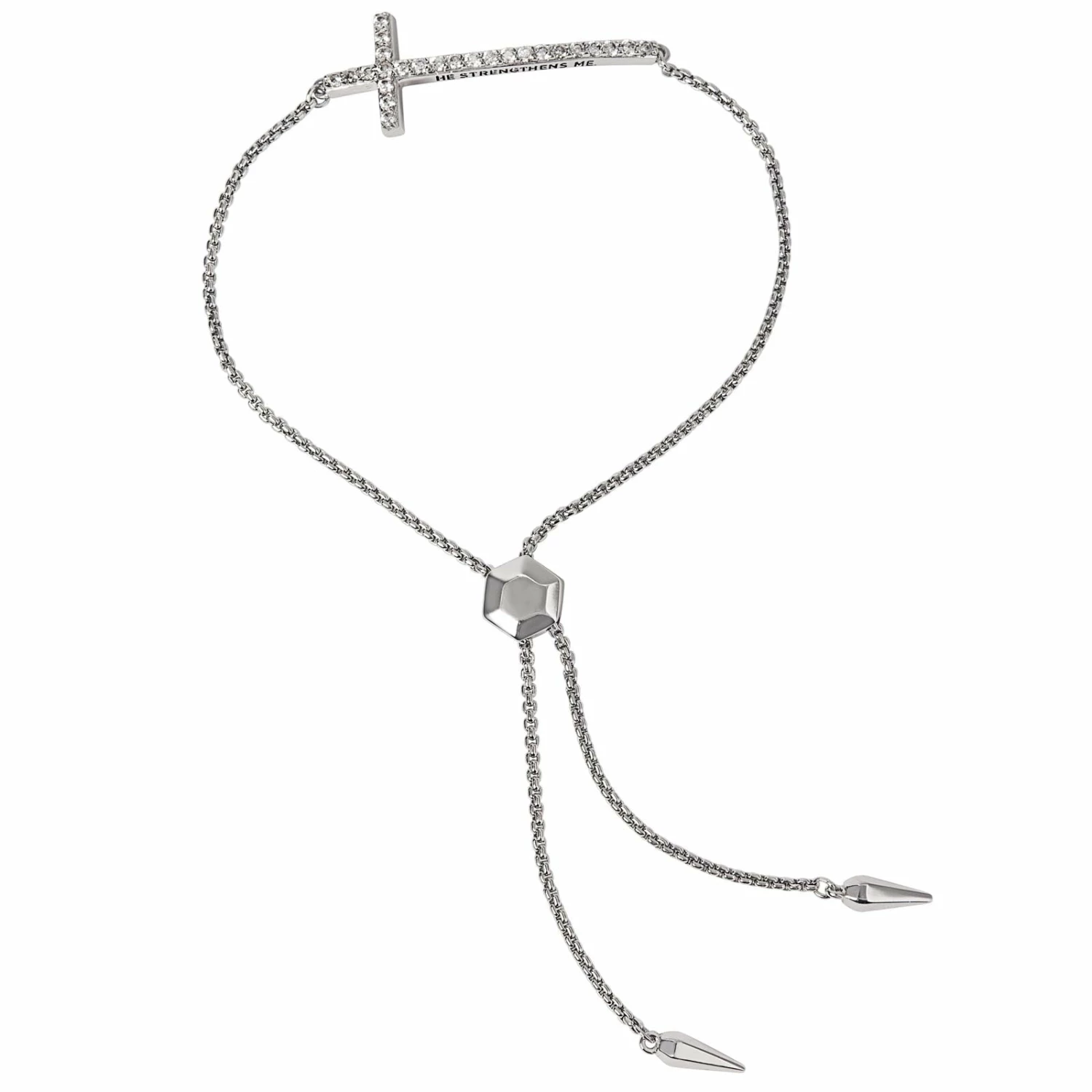 “I can do all things through Christ who strengthens” {Philippians 4:13} Empower yourself or someone you love with our “He Strengthens Me” Spiritual Cross Bolo Bracelet. This bracelet will remind you that you’re stronger than you know because you have the strength of the Lord within you! With a slender, delicate profile and a discreet “He Strengthens Me” inscription on its side, this bracelet has been designed with a unique adjustable bolo feature to offer a custom fit.