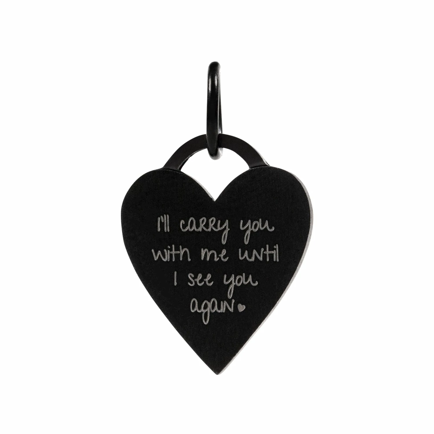Carry your lost loved one(s) with you wherever you go with our โIโll Carry Youโ Heart Pendant. This pendant is inscribed with โIโll carry you with me until I see you againโ as your reminder (and keepsake) that even though theyโre gone, theyโre forever in your heart. Orders containing In{script}tions orders may take and additional 3-4 days to process.