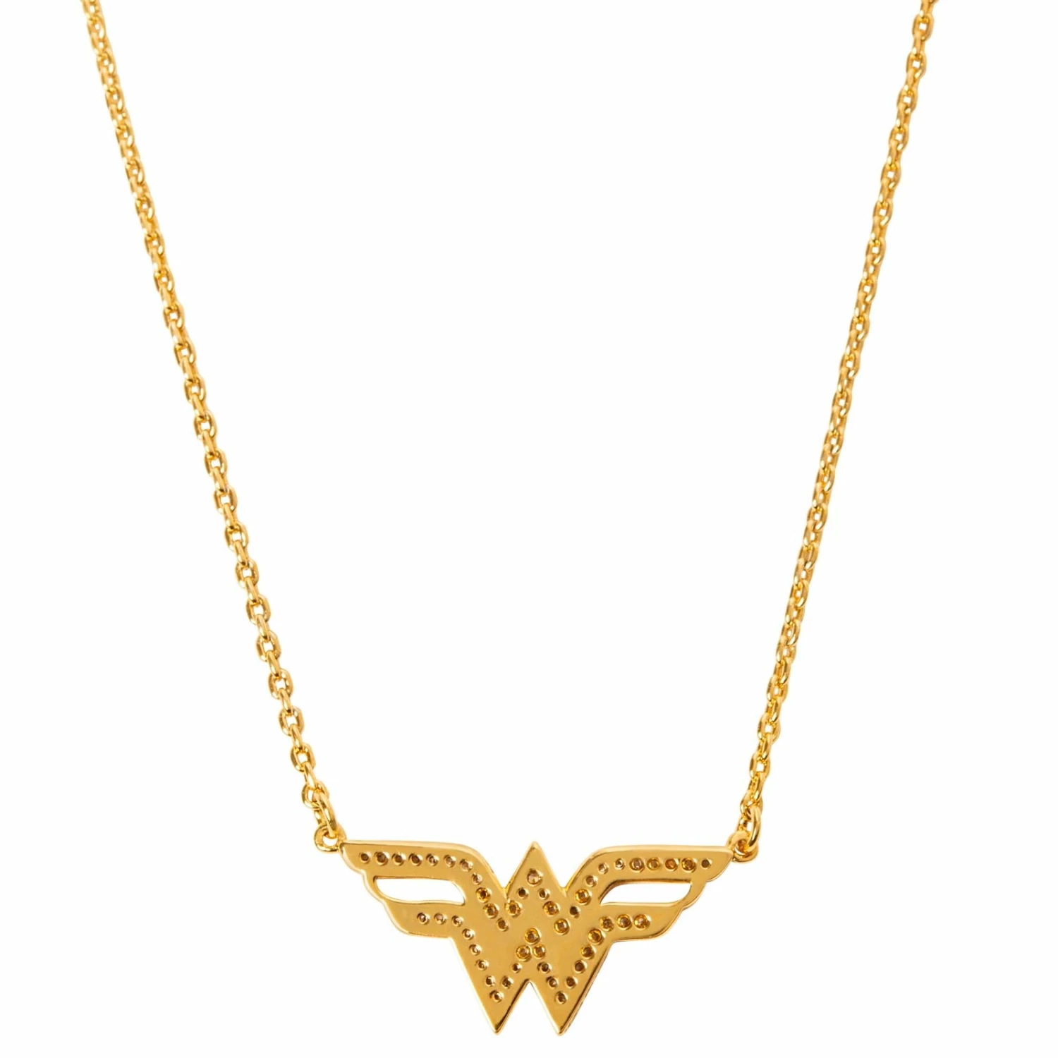 Wear this classic “WW” Wonder Womanβ’ logo around your neck as a daily reminder that you are a WARRIOR. This piece was designed in a gorgeous polished gold finish with Cubic Zirconia, featuring the words “I am Powerful” engraved. As soon as you put this necklace on, you will feel like the Wonder Woman you are.