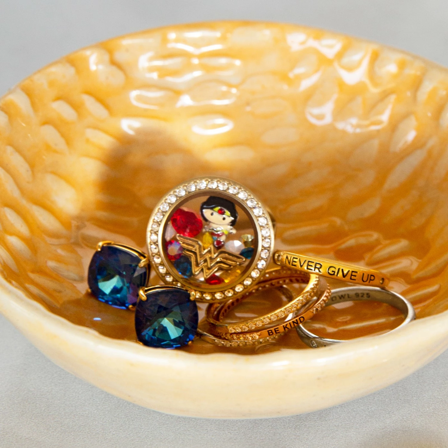 Add this classic “WW” Wonder Womanยฎ logo Charm to you Living Locketยฎ as a daily reminder that you are a WARRIOR. This piece was designed in a gorgeous polished gold finish making it a must-have to tell your Justice Leagueยฎ story.