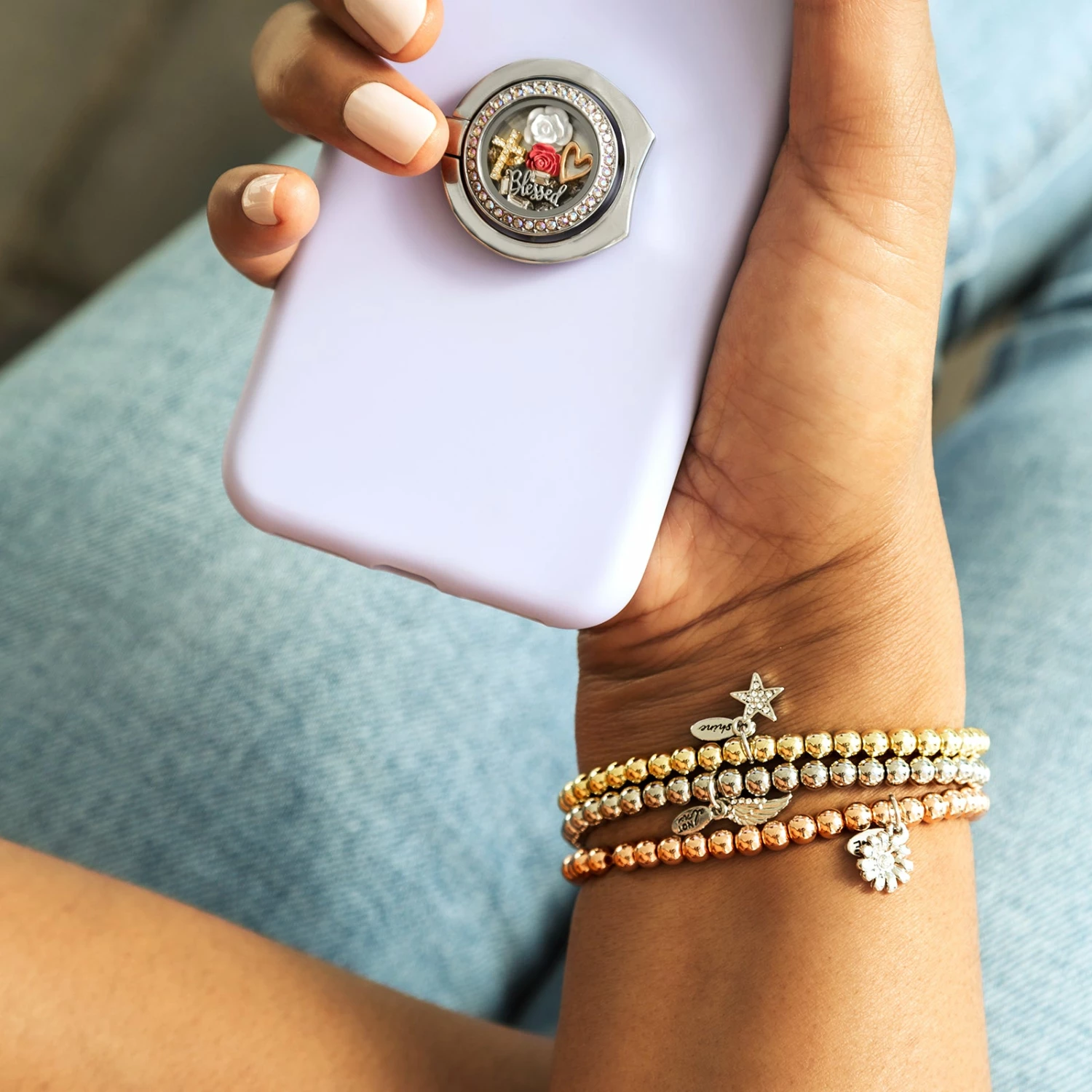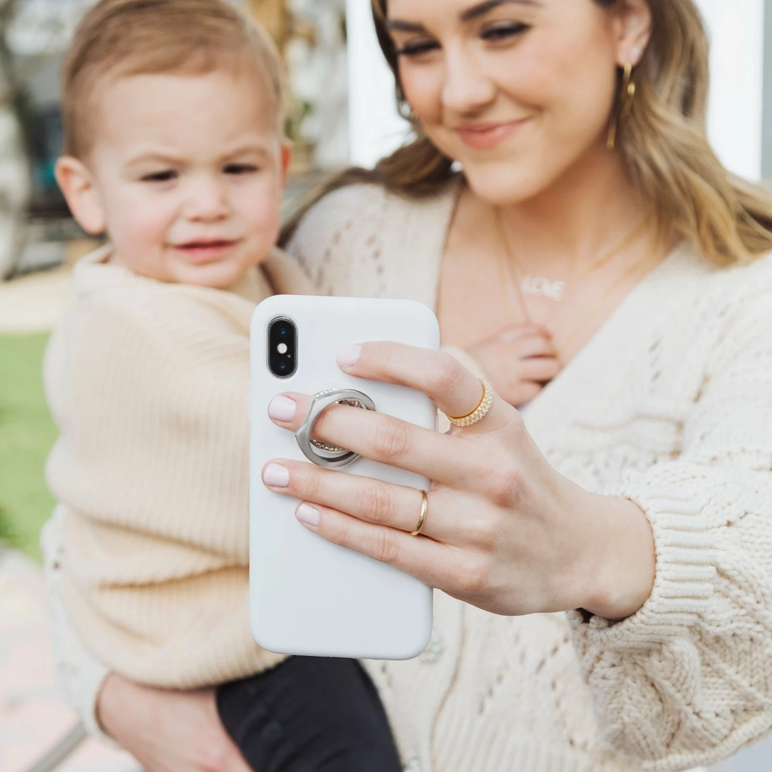You asked for it! Introducing everyone’s favorite way to tell their story, right on their phone! Add our pop socket Medium Silver Phone Ring Twist Living Locketยฎ Base + Face to the back of your phone for easy selfie-taking, show-watching or zoom-attending!