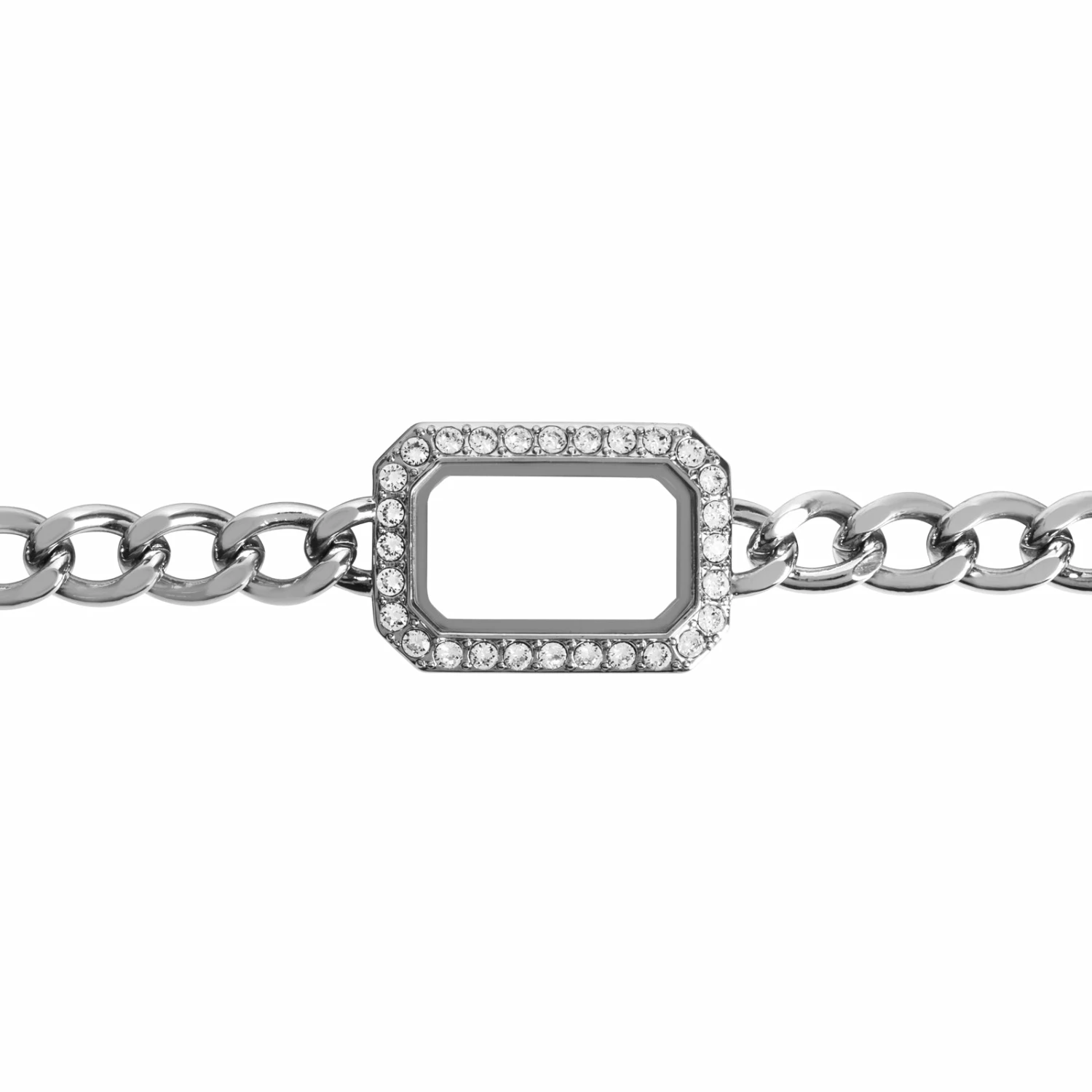Making a statement will be easy with this seriously beautiful Silver Chain Link Bracelet with a Living Locketยฎ attached and ready to share your story! Framed in shimmering Crystals, you’ll love wearing this piece dressed down with your favorite jeans, or dressed up with a cocktail dress!