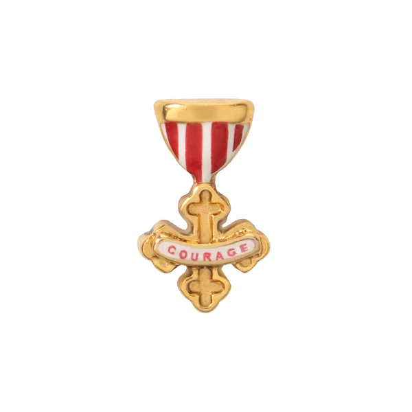 Awarded to the Cowardly Lion: the Triple Cross โ youโre now a member of the Legion of Courage! Add The Wizard of Oz Badge of Courage Charm to your favorite Living Locketยฎ to show your bravery.