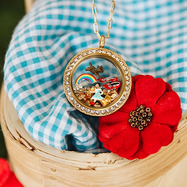 Who is Dorothy without her magical, ruby-red slippers? Featuring sparkling, glittery Light Siam Crystals, The Wizard of Oz Ruby Slippers Charm belongs in any dreamerโs Living Locketยฎ.