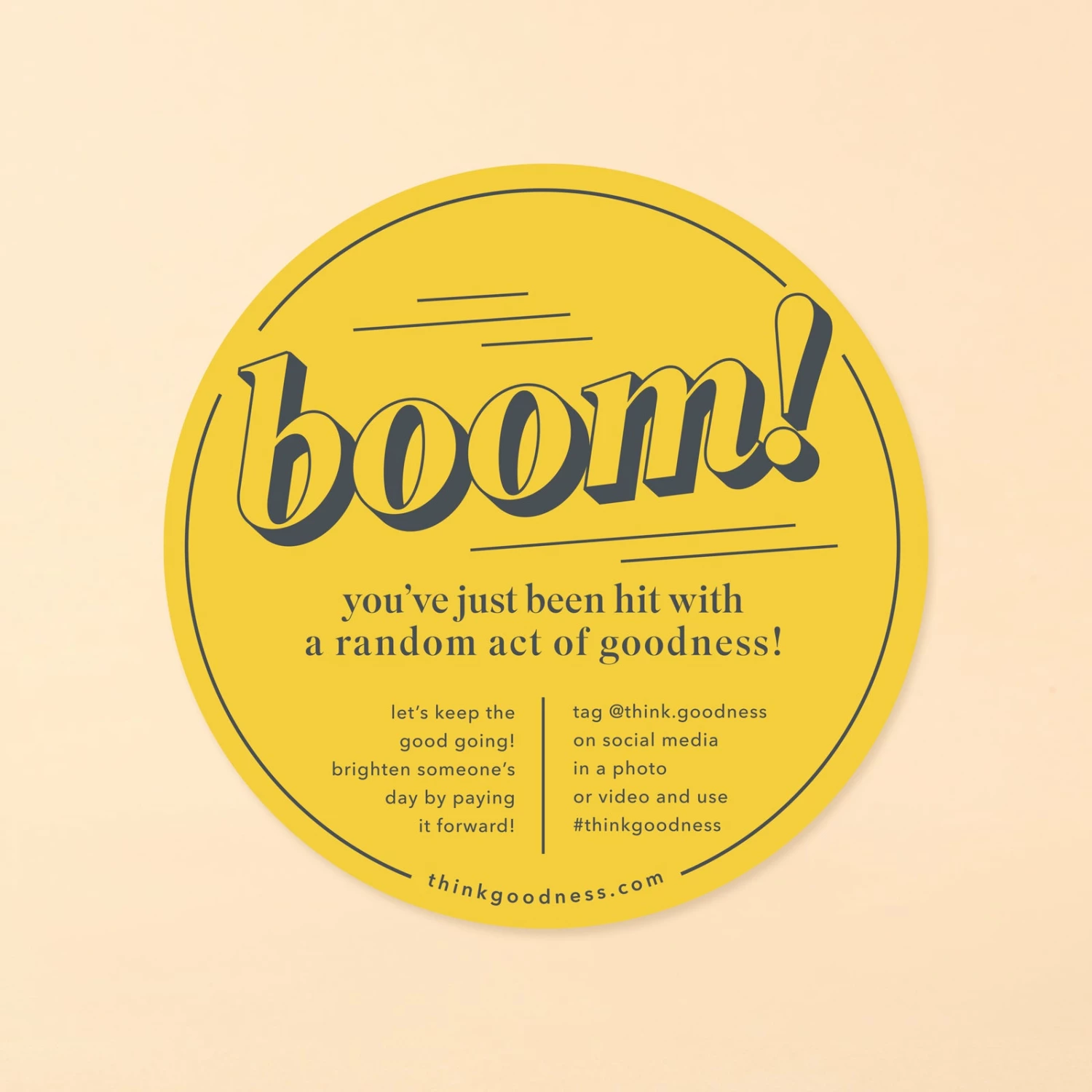 Boom! You are about to give out all of the goodness with these Cards! Drop them while you’re doing Acts of Goodness and help us spread the word that Goodness is the WAY! Check out our social media channels to get inspired on how to use these Boom Cards!